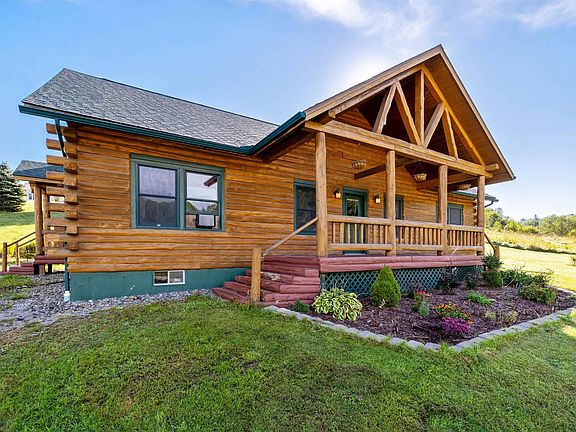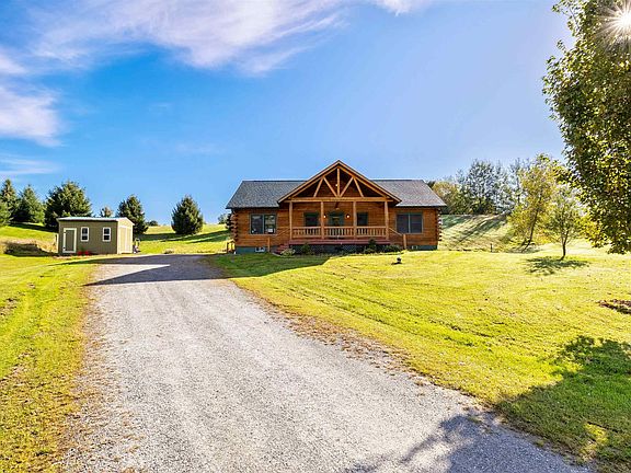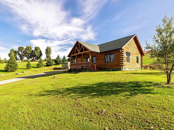 Spacious, beautifully maintained log home. This cabin sits on over 2 acres of land on a Vermont country road. Home boasts open floor plan, tons of natural light and woodwork throughout. Single level living with insulated basement for storage or finish for increased living space. Outbuildings offer extra storage. Large yard offers plenty of space for privacy hedge, gardens or fruit trees.