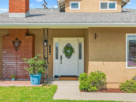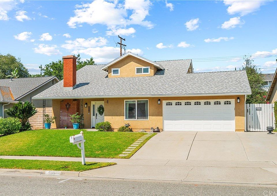 This gorgeous 4 beds, 2 baths, 1,599 sqft home has been upgraded and cared for in every way. The curb appeal on this home is amazing with a beautiful landscaping, new roof, wide concrete driveway with a third parking spot, and a brick chimney. As soon as you walk through the front door, you will immediately enjoy the bright open concept with laminate flooring and recessed lighting throughout the home. The living room has a brick fireplace and dining area that is perfect for family gatherings. The kitchen has tons of custom cabinets for storage, stunning granite countertops, a large peninsula,, and stainless steel appliances. The connected bonus space can be used as an eat-in kitchen area, reading nook or lounge area. Walk through the large sliding glass doors to the spacious backyard and you will find a huge concrete patio with new aluminum patio cover complete with integrated LED lights and ceiling fans. An above ground spa for those cozy nights. The main floor bedroom is perfect for a guest room, den, or private office. The 3 additional bedrooms, one that is being used as an office, are on the second floor equipped with ceiling fans and views to the north. The large upstairs bathroom has double sinks, a roomy bathtub and plenty of storage. This house has been generously upgraded and refurbished with only the best features in mind. It is perfectly located near all the best restaurants and shopping that Brea has to offer.