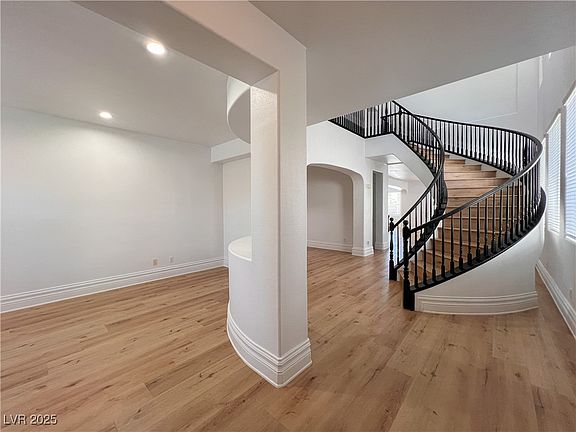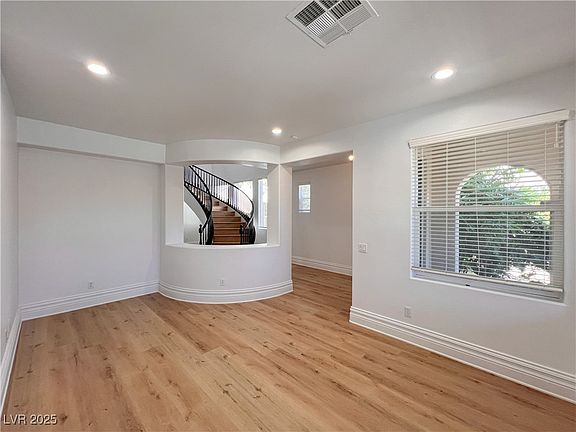 GORGEOUS, 5 bed, 4.5 bath, 4100+ sqft home in the guard-gated, master-planned community of Rhodes Ranch! The home features a beautiful stairway, recessed lighting, a formal living room, a formal dining room, an upstairs loft, and an open kitchen area overlooking the family room. The kitchen has granite counters, gas stovetop, built-in double oven, and walnut custom cabinets. Master suite has a large walk-in closet, and master bath jetted tub, his and her separate vanity sink, a balcony with great mountain views and a third floor extra retreat! Amenities within the community include 4 star rated, Rhodes Ranch Golf Club, tennis courts, fitness center, lap pool, lagoon pool, and a water park! Only 20 minute drive from the Las Vegas Strip, Raiders Stadium and Red Rock Canyon. See this Beauty today. No Pets