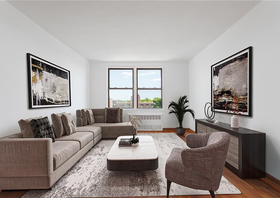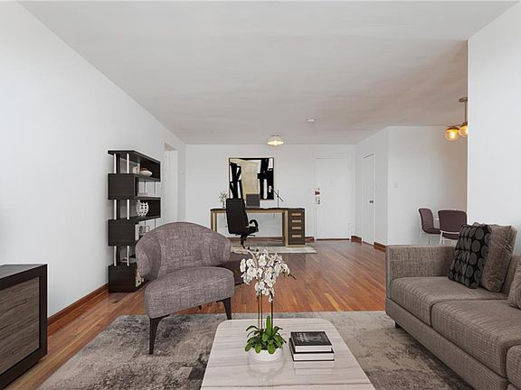 Top-Floor! Prime Kensington This spacious top floor 1 bedroom is bright and airy, with a large living area and separate dining alcove -perfect for your next dinner party. The living room is huge and very flexible so you can create separate space for a home office. The kitchen is updated with quartz counters, microwave, dishwasher, plenty of workspace, storage, room for small table and has a window. The large bedroom fits a king sized bed and so much more, and has 2 closets a 2nd exposure facing south. There are abundant closets with 5 in total and includes 1 oversized walk-in at the entry. The unobstructed views facing east & south over the neighborhood offer lots of bright light. There are AC through-the-wall units included and original hardwood floors throughout in great condition. This well maintained elevator building has a part time doorman & live in super. It features 2 laundry rooms, storage & bike room and a common outdoor space. There is an indoor garage which currently does have a waitlist and subletting is allowed for 2 years after a few years occupancy. Perfectly located, just off Cortelyou Rd in the Ditmas Park vicinity with many options for restaurants, transportation & shopping and a close walk to Prospect Park. Convenient to the B, F, Q Trains & Express Buses. Sorry, this is a strict No Pet building- That includes a cat.