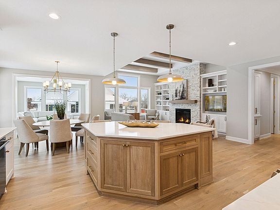 This exquisite one story home built by Wooddale Builders, Inc. is located in the newest Shoreview Neighborhood of Harbor Shores. This property features 3 bdr, 3 baths, 3 car fin. & heated garage and 3771 FSF. Stunning main floor MBR suite has designer master closet and private spa bath with soaking tub & large CT shower, w/heated flooring. The gourmet chefs kitchen features custom enameled cabinetry, CT backsplash, walk-in pantry, and Quartz counters throughout this amazing home. GR has 12 foot ceilings, built-ins, and impressive stone fireplace. Main floor Den with by-pass doors. The gorgeous four season porch features walls of windows w/patio door leading to the maintenance free deck. The lower level is an additional bdrs and a 3/4 bath w/large CT shower. A true masterpiece w/ architectural elements throughout. This property is under construction - completion date approx 10/30/25.