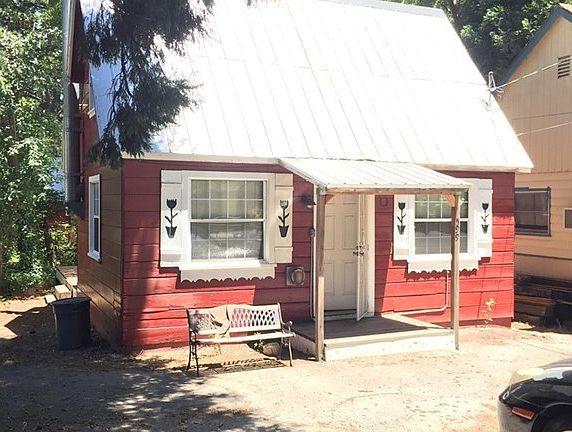 Cottage cute cabin in absolute serenity! Just a short drive from the lake and all the activities, this home is set back from the street to allow area for parking of vehicles, toys, boat, etc. Just a short walk at the end of the street you will find a laundry mat and stores to shop, grab groceries, a coffee, etc all the while enjoying the gorgeous greenery and tall trees of the forest. The home itself is sure to impress you with original wood flooring throughout that has been magnificently cared for. Wood panel throughout the home with open wood beamed ceilings and open concept kitchen with wrap around breakfast bar. The sliding door offers views of the forest and the lush greenery along with an exterior wood deck for entertaining, dining or just relaxing with a cup of coffee. There is a corner fireplace for the winter nights and the upstairs is an open loft - perfect for sleeping quarters and a small retreat area. Bathroom offers a closet, shower, pedestal sink all in wood paneling. This home has been lovingly maintained - check it out today!