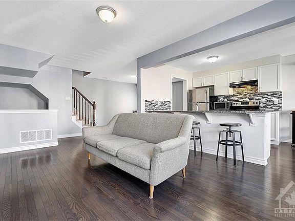 This tastefully finished 2 bedroom 2 bathroom FREEHOLD, END UNIT townhome located in the family friendly Monahan Landing neighbourhood in Kanata South is sure to impress. Conveniently located near parks, schools and transit this stylish home offers a great opportunity. The welcoming foyer offers access to your oversized single car garage, powder room and laundry room. The open concept main floor is perfect for entertaining offering a beautiful kitchen featuring granite counters, stainless steel appliances and contemporary cabinetry opening onto the dining and living room areas boasting stylish hardwood flooring throughout. Just off the dining room you will find access to the private balcony, a perfect space for relaxing and outdoor entertaining. The upper level offers a substantial master bedroom with walk-in closet and a sizeable 2nd bedroom accompanied by a trendy main bath finished with ceramic floors and white vanity. No conveyance of written offers until 2pm on the 9-Feb-2021.