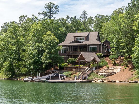 THE PRESERVE AT STONEY RIDGE.Great location and popular development on East side of the Lake and this is it! Great price for this craftsman style lake home with covered grilling deck and stone firepit at lakeside w/ 2 boat slips,PWC & 2 shoreports. This lovely home has 5 bedrooms and 4 baths, 3 bedrooms,bunk room & 3 baths in the main house plus a guest cottage with kitchen/bar & full bath great for family or friends or recreation room for the kids. Heart pine floors,large greatroom,granite, built-in wine cabinet & stainless in the kitchen plus a wonderful covered deck. Outside offers great landscaping; an easy walkway to the waters edge. Great storage underneath main level for all the water toys and plenty of parking.The Preserve offers a pool, tennis courts and is gated.