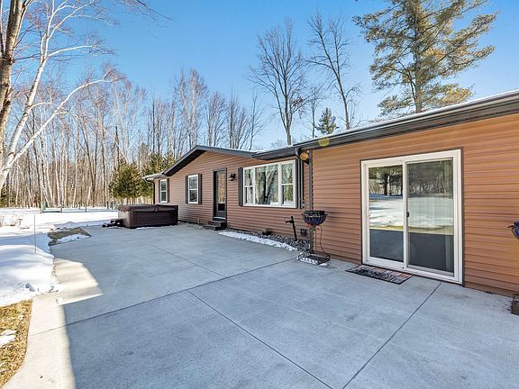 Country paradise in this updated ranch home with newer 30X50 insulated and heated garage with 9 ft overhead doors and private pond. Easy highway access with many updates including roof, aluminum fascia and soffits, flooring, remodeled bathroom w/walk-in shower, triple-pane windows and patio door, siding, patio, kitchen w/walk-in pantry, water heater, central air, water softener, and driveway. New well. Large master bedroom (was 2 bedrooms). Possible 3rd bedroom if needed. FF laundry. The newer 30X50 outbuilding has 200-amp electric service and is finished off meticulously and hooked up for a generator also. Hot tub on priv backyard patio. Priv pond stocked with fish and equipped with an aerator. Hard-to-find country property with no restrictions!