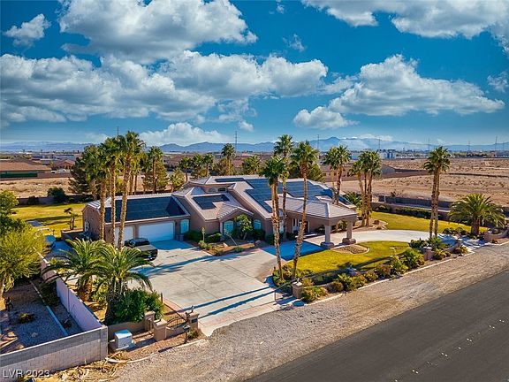 This luxurious Las Vegas estate is an entertainer's dream that boasts six spacious bedrooms and over 6,000 square feet of living space. Situated on a sprawling two-acre lot, the property is surrounded by lush, vibrant landscaping that adds to its charm and beauty.