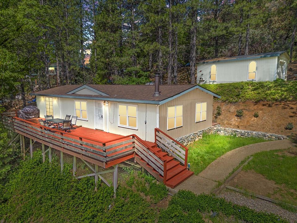 Charming country home on spacious 1.59 acre lot. Enjoy forest views, privacy & low maintenance living. 3 bedroom, 2 bathrooms, updated kitchen with granite countertops, gas range & dishwasher. Extra large master suite with French doors to outdoor. Master bath features granite counters, custom tile shower + jetted tub. Additional 2 bedrooms, full bathroom + inside laundry room. Low maintenance lot with detached garage & dog run. Spacious deck to enjoy outdoor living. Come take a look!