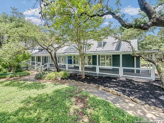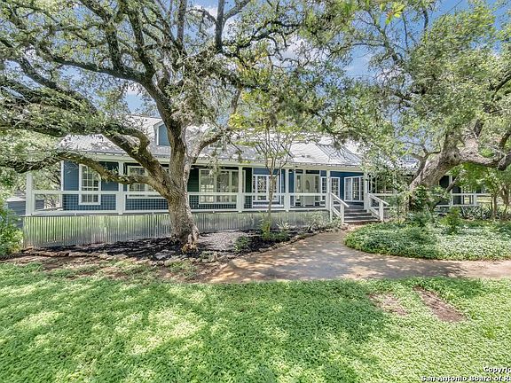 Enjoy Texas Hill Country Living on 5 Level, Treed Acres with Full Perimeter Fencing. This Charming Ranch-Style Home has a Sprawling Covered Front Porch to Welcome You Back Each Day. Oversized Windows Allow for Lots of Natural Light & Tranquil Views of the Huge Oaks, Crape Myrtles, Texas Persimmons & a Mulberry Tree. The Spacious Rear Deck is Perfect for Afternoon Barbecues. Retreat to the Master Suite with Double Walk-In Closets, a Texas-Sized Shower & Luxury Soaker Tub. The Second Downstairs Bedroom has a Private Bath with a Clawfoot Tub & Tiled Shower. The Renovated Kitchen has a Gas Range, Pot-Filler, Large Island & Plenty of Counterspace. The Open Concept Floorplan Combines the Kitchen, Dining & Living Rooms for Family Enjoyment. The Utility Room has a Convenient Half Bath with Outside Access & Pantry Shelving. The Upstairs Offers a Secondary Flex Room, Bedroom with a Walk-In Closet & Full Bath with a Tiled Shower. The Detached Shop, Equipped with Electric, Offers 1200 sqft and an Added Loft. Bring Your Animals!