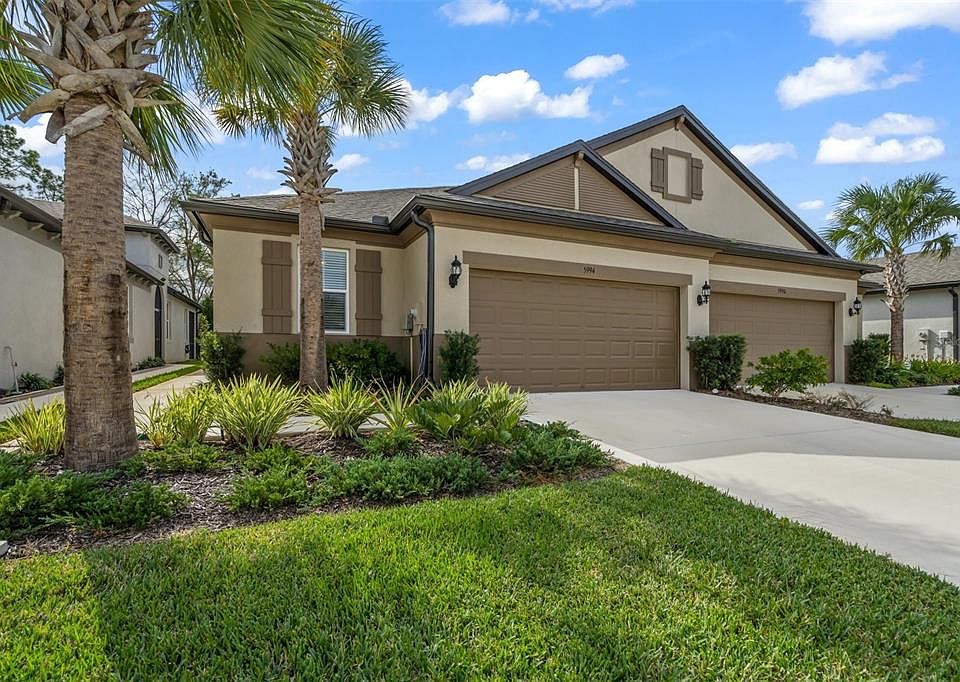 Step into the luxury of your new residence in Amberly’s private gated community! This expansive villa, featuring a well-designed split floor plan, boasts an impressive array of upgrades that truly distinguish it. Offering 2 bedrooms, 2 baths, and a dedicated office space, this home harmoniously blends comfort and functionality. As you enter, the meticulously designed interior welcomes you with custom lighting, tray ceilings, and fans throughout. The owner’s suite is the perfect place for privacy and comfort with a large walk-in shower, dual sinks, and spacious closet. The kitchen showcases vast quartz countertops paired with sleek stainless-steel appliances along with a walk-in pantry. Tile flooring seamlessly connects the kitchen to the spacious living room, fostering an open and inviting atmosphere. Relax on your expansive back screened lanai, a spacious retreat offering private views. The home is equipped with a smart thermostat, hurricane shutters and epoxy-coated garage flooring. The property’s strategic location adds to its allure, providing easy access to I-75 and placing essential amenities just minutes away. Don’t miss this opportunity to live the Florida dream in a home that effortlessly combines luxury, functionality and an ideal location. Schedule your showing today.