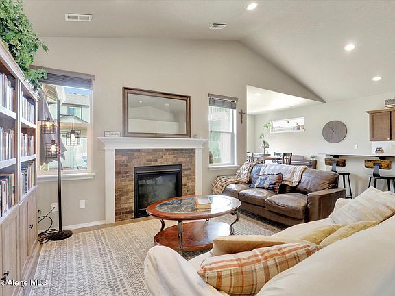 Discover this well maintained and move-in ready home nestled in a desirable Rathdrum neighborhood, just steps away from the Majestic Park which offers a splash pad and playground. The charming home features a spacious master bedroom and ensuite, 2 additional bedrooms and bathroom, with an open concept living area. The stunning kitchen boasts a quartz island, soft close feature cabinet drawers, stainless steel appliances, and a generous walk-in pantry provides an ideal setting for memorable gatherings and hosting family and friends. The backyard invites a relaxation and social gatherings, complete with a fire pit area and a haven for garden enthusiasts.