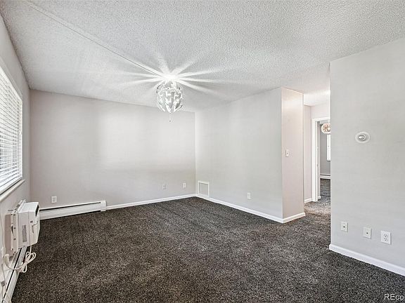 Pull into your condo complex & into your deeded carport & step thru the locked gate into your beautiful complex courtyard. Take the elevator to your 3rd floor condo or get in your final step count & take the steps to the top floor. When you open your door to your lovely condo you step into your large living room with beautiful carpeting & a very soft comfortable padding & a great view of your complex courtyard. To the right you have a charming dining area with a ceiling fan & more views of the courtyard. To the left of your dining room is your galley kitchen with all white clean like new appliances. You’re going to love your kitchen with it’s under cabinet lighting, under cabinet wine glass rack, a convenient spice rack wall cabinet & beautiful tiled flooring. Down the hall from your living room is your bathroom with a modern stylish bowl sink setting on a granite countertop on top a nice vanity & the same beautiful tile that is in your kitchen. Separate from the vanity area is your toilet & shower/tub combo. Across from your vanity area is a nice large closet with closet organizers & beyond the vanity area are your 2 bedrooms. Both bedrooms feature the same carpet & soft padding. The larger bedroom has more closet organizers & a door to step out onto your covered & screened in balcony where you can sit & relax & let the day disappear behind you. Your new condo complex offers a clubhouse just next door to your building. Inside the clubhouse find a pool table, foosball table, fireplace, chairs for relaxing & a bar area with refrigerator, microwave, coffee pot, & sink. Also in the clubhouse is a fitness center & next to the clubhouse is a lovely pool for those hot summer days. Your complex also offers a community garden, basketball hoops, lovely grass areas & a laundry area. You also have a storage area near your condo unit & only ¼ mile away is the Highline Canal Trail for walking, biking, & running. Your condo is close to shopping, entertainment, & dining. New Paint