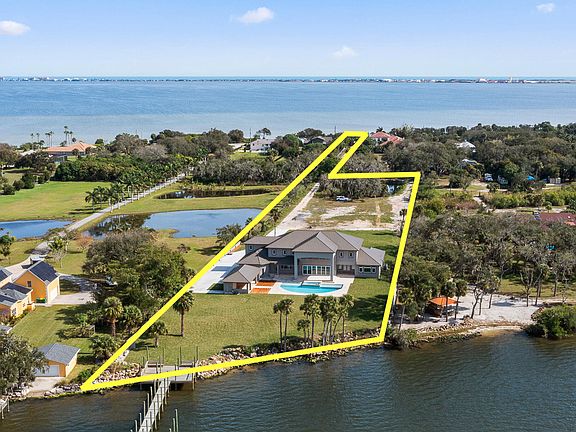 RIVERFRONT NEW CONSTRUCTION!! This river-to-river 6729 square feet luxury estate on the most coveted S. Tropical Trail features 169' of riverfront footage, as well as a one-acre private lake nestled on 5.14 acres between the Banana River and Indian River/Intercoastal Waterway. Your journey begins at the awe-inspiring Cantera front doors, a grand entrance to a world of unparalleled splendor. Inside, the rich tones of Mahogany hardwood floors and the intricate patterns of Turkish tile grace the floors of this estate featuring 5 bedrooms, each providing a private sanctuary complete with its own balcony and en-suite bath.At the heart of this estate, a chef's kitchen stands proudly, adorned with custom cabinetry and top-of-the-line appliances, ready to inspire culinary masterpieces. More.... Hand-forged wrought iron railings thread their way throughout the estate, adding a touch of vintage charm. Step outside and be embraced by the allure of a heated pool and spa with the beauty of travertine decking. A 20 x 40 pool cabana, equipped with a summer kitchen promises unforgettable outdoor dining experiences. A generous five-car garage awaits the automobile enthusiast, while a private boat dock invites you to explore the tranquil rivers that frame this luxury riverfront estate.