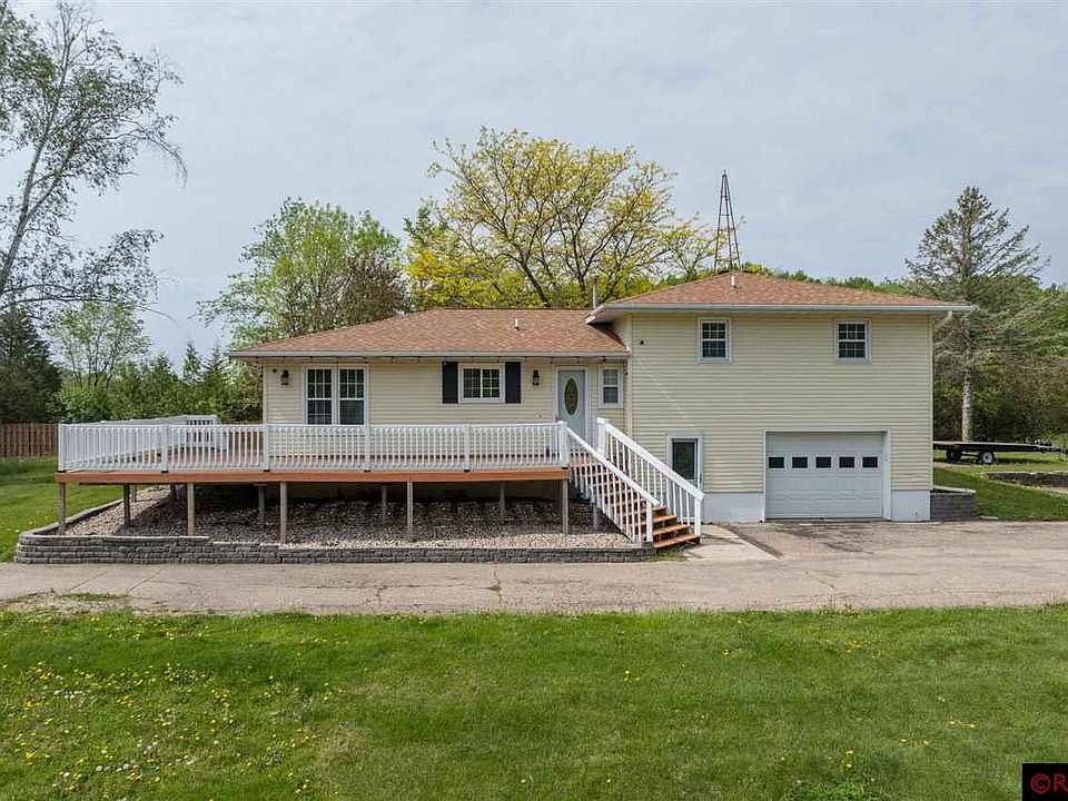 Nestled on a serene 2.78 acres just minutes from Mankato, this beautiful 3 Bedroom multi-level home offers the perfect blend of country living and modern comfort. Step into the newly updated Kitchen, with beautiful quartz countertops, ceramic flooring & newer appliances. The space flows seamlessly into the informal Dining Room, with patio doors leading to a wrap-around deck overlooking the sprawling yard, ideal for enjoying peaceful mornings or entertaining guests. The spacious Living Room exudes warmth with its solid wood pine ceiling beams and a wood-burning fireplace adorned with Kasota stone detailing, creating a cozy ambiance perfect for relaxing evenings. All three Bedrooms are conveniently situated on the same level, accompanied by a full Bath boasting double sinks and jetted bathtub. Descend to the lower level to discover a generous Family Room, offering versatility for a game room, movie area, and lounging space. Plenty of Storage throughout the house, ensuring ample space for belongings. An attached 1-stall garage provides convenience, while a detached 30' x 24' garage offers additional versatility, boasting insulation and heat accommodating hobbies or projects year-round. Surrounded by wildlife and tranquility, this property is an oasis for those seeking the peace of country living without sacrificing proximity to city amenities. Don't miss the opportunity to make this your new home!