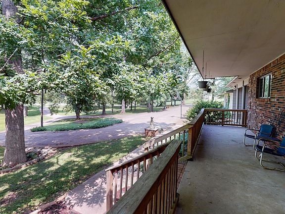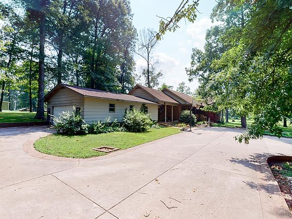 Spacious brick home offering three bedrooms and three full baths, with potential fourth bedroom and a finished basement, all on 8 acres, just outside of Metropolis IL. Over 3300 square feet with a large living room and two sided fireplace, two bedrooms upstairs, including the primary bedroom with tray ceiling & attached bathroom. Downstairs is an awesome bonus room with a wetbar and a built-in refrigerator, a bedroom and full bathroom, laundry room and another room that could be a fourth bedroom or used for storage. There is a covered breezeway that attaches the 2 car garage to the home that provides a nice area for your grill and patio furniture. The garage has two storage rooms and there's a paved circle driveway with two entrances off the side road.