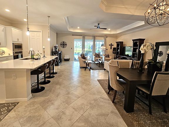 Stunning 3+den, 3 full baths, "Maria" model w/ heated pool, heated spa and outdoor kitchen. Beautifully decorated and awaiting your seasonal rental and/or vacation needs. The National Golf & Country Club offers NO GREEN FEES w/ the transfer of golf amenity, only $30 golf cart rental to play golf! This is Ave Maria's premiere location and the only 24/7 manned and gated security community. Besides golf, enjoy Pickle ball, Tennis, Fitness Center and Spa and soon to open Resort Pool and Outdoor Bar and Grille. $150 initial application fee reserves the property. $100.00 golf transfer fee (OPTIONAL) and $150 HOA amenity transfer (MANDATORY). $1000 refundable security deposit if returned w/ normal wear/tear only except for $295.00 departure cleaning fee. The house has every amenity, multiple TV's, fully stocked kitchen/baths, ceiling fans, extra lighting, window coverings and so much more. Even an office for you to work in. Landlord requests NO PETS please. Don't delay! You won't want to go home! Price already includes the 11% "hotel tax".