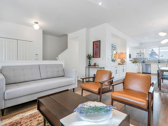 Modern white kitchenQuartz countertopsSs appliancesSpacious bedroomsTwo decksPrivate yard patio