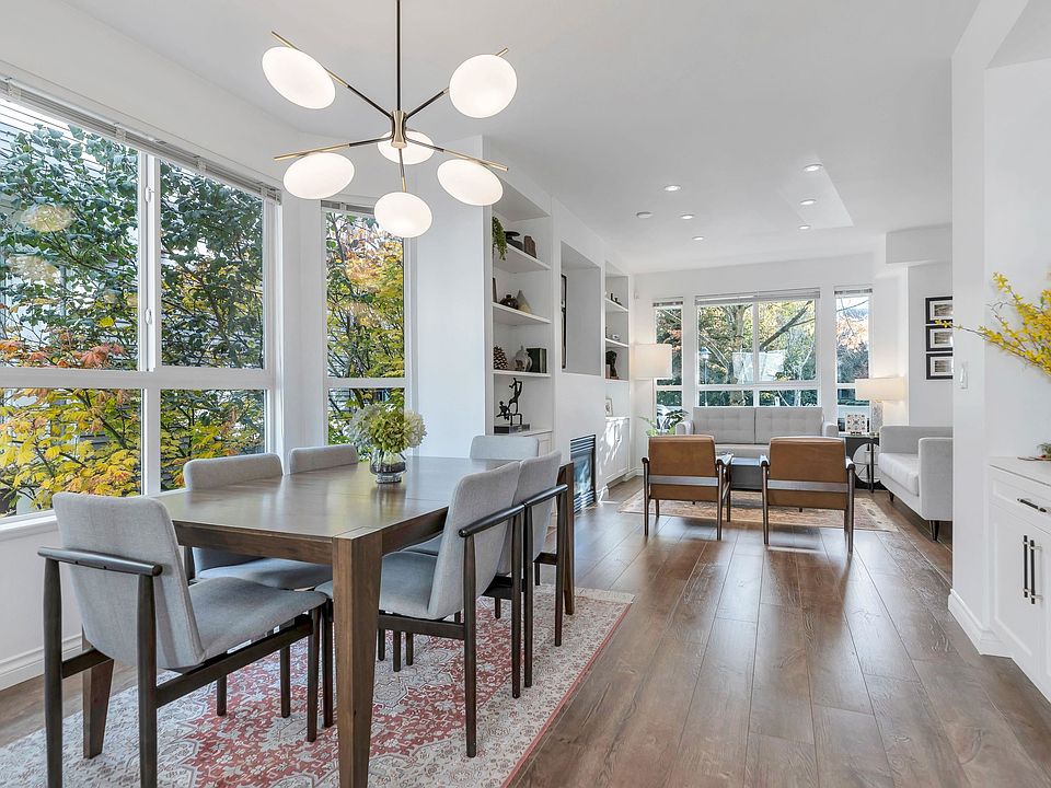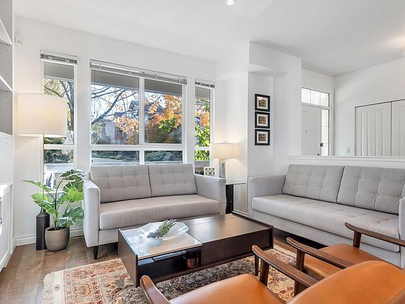 Welcome to Riverwind in Steveston where everyday life meets coastal charm. This rarely available duplex-style home offers nearly 1,900 sq ft of bright, south-facing air-con'd living framed by mature trees. The open main floor features pot lights, wide-plank flooring, and a modern white kitchen with quartz countertops, and ss appliances. Designer West Elm lighting & custom built-ins add both storage and style throughout. Upstairs you’ll find 3 spacious bedrooms, including a primary suite with a w/i closet and ensuite. Downstairs, a large den. Enjoy two decks and a private yard patio for morning coffee or evening gatherings after a stroll or run along the Dyke. Attached dbl garage with storage. Well-kept complex with clubhouse, gym, and playground. Pet friendly & easy to show. Call to view!