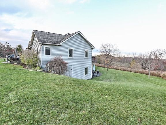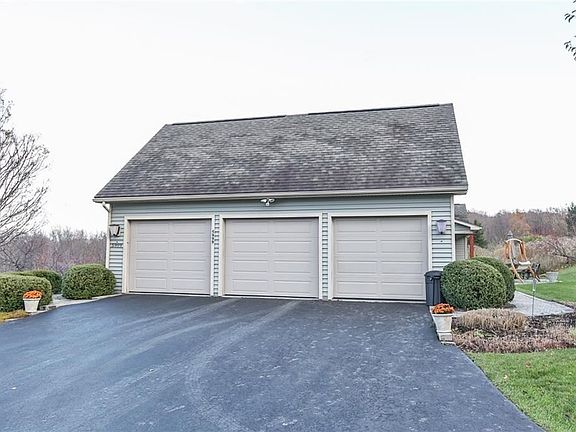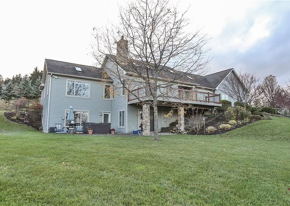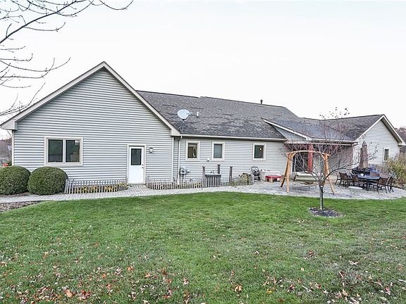 If you're looking for privacy, an open floor plan and Canandaigua Schools, look no further. 7.3 acres hosts a 3 bedroom, 2.5 bath home. Main level features an open concept with the kitchen/dining room/ living room, gas fireplace and cathedral ceilings. There is a master bedroom suite, 2nd bedroom, half bath and laundry/mudroom area. Lower level has a family room, bedroom, full bath, office, play room, utility area plus a walkout to a patio partly covered by the upper deck with a great view of the property from the hot tub. A recently built 24x36 pole barn features a main sliding door, walk-in door, concrete floor, wood stove for a workshop area plus an open-roofed over lento sitting/storage area with concrete pad. The acreage is horse friendly with many mowed walking/hiking trails.