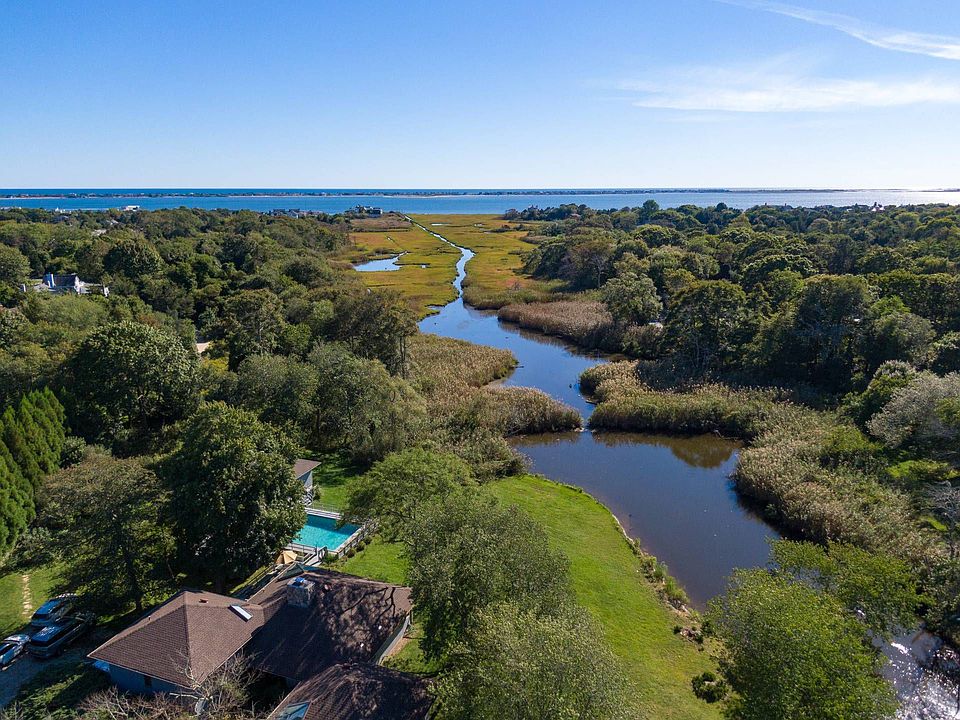 South of the Highway 2.4 acres with southwestern sun exposure. A private flag lot opens to the main house featuring 3 bedrooms/ 3 baths, en-suite primary bedroom on the main floor, hardwood floors throughout, central air, oversized floor-to-ceiling stone open-hearth fireplace, spacious galley kitchen, and bar area. The expansive entertainment deck faces the Tidal Remsenburg Pond which has a navigable path to Kayak or Paddle Board out to Moriches Bay. Gunite pool is surrounded by a continued entertainment deck. The Pool House/ Cottage features a bath, kitchenette, entertainment space, and changing areas. Stunning southwestern sunsets, verdant rolling lawns to the tidal pond sets the stage for a spectacular wildlife refuge. Easy immediate proximity to Remsenburg Marina, The Westhampton Yacht Squadron, and a Sandy Moriches Bay Beach. 90 minutes from NYC. Rare first offering. House Is Being Sold As Is.