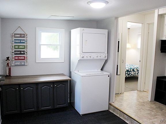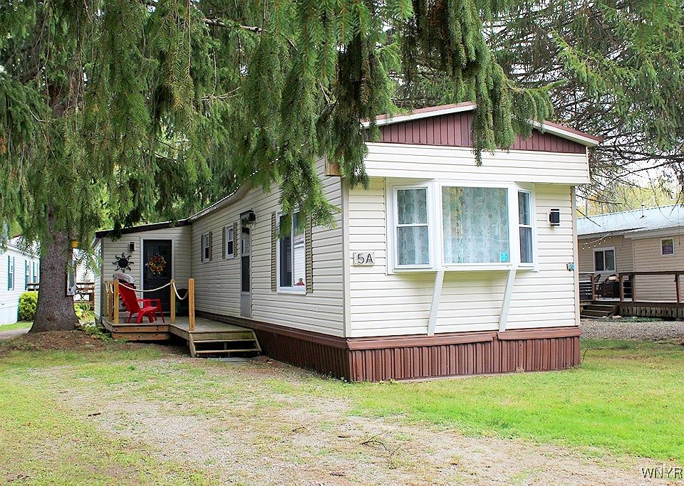 Welcome to this upgraded and furnished single wide trailer, ideally located within walking distance of Ellicottville’s vibrant shops and restaurants. This 3-bedroom, 1-bathroom residence features a delightful bump-out design, providing additional space, enhancing both comfort and functionality. Upon entering, you are greeted by a large foyer that offers convenient access to stacked laundry facilities and ample ski storage, perfect for enthusiasts looking to make the most of the nearby winter sports. The foyer leads into the bedrooms, bathroom and the open-concept living space, which integrates seamlessly with the kitchen/Dining and Living area, fostering an inviting atmosphere for gatherings and relaxation. The kitchen boasts modern appliances, including a gas range and a refrigerator, complemented by ample cabinetry, designed to enhance both style and functionality. The dining area provides a cozy spot for meals and lively conversations. The large living room offers a cozy place to relax after a day on the slopes, with ample windows. The layout of this home is meticulously crafted to make the most of every square foot ensuring that each room feels spacious and airy. Step outside onto the front deck, where you can unwind or entertain while enjoying the fresh air. The deck is equipped with a BBQ area, perfect for hosting summer cookouts or casual gatherings with friends. Surrounding the home, the landscaping is well-maintained, offering a neat and inviting outdoor space. This property not only provides comfort and convenience but also positions you near the heart of Ellicottville, where you can explore local shops, restaurants, and recreational activities. Whether you are seeking a primary residence or a vacation getaway, this home offers an exceptional blend of modern living and access to the best the area has to offer.