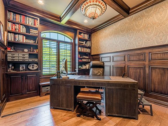 Presenting a Prairie Lakes home that is true masterpiece of style. The experience begins as you walk to the French door entry, where you'll discover extraordinary details throughout this expansive home. The foyer opens to the dining room w/ generous space for a large table for your guests. The elegant DR features: wainscotting, crown molding, & detailed ceilings. The office includes a French door entrance boasting: wainscotting, crown molding & custom built-ins. At the heart of the main level, you will find the kitchen to be a fabulous design that even the most discerning chef will enjoy. This high-end kitchen boasts sleek, custom-designed cabinetry adorned w/ exquisite granite countertops, complemented by top-of-the-line stainless steel appliances. W/ views of the pool, as well as an additional sitting room, the kitchen offers a ship-lapped ceiling & beautifully rich hardwood floors. The grand island is perfect for entertaining! The kitchen also features an elegant butler's pantry w/ a beverage refrigerator & a detailed wet bar. The eat-in area includes a bay window w/ custom plantation shutters & a detailed ceiling. The eating area gracefully opens into the beautiful hearth room! The family room features a grand, coffered ceiling adorned w/ intricate molding & a stunning, stone fireplace, creating an inviting & luxurious focal point for gatherings & relaxation. Situated on the 1st floor, the expansive primary bdrm offers unparalleled luxury w/ rich detail & hardwood floors. The high-end hotel-style primary bath exudes luxury w/ detailed furniture-style sinks, a beautiful tub surrounded by custom built ins, & a spacious shower, providing a rejuvenating retreat. The primary suite boasts duel custom closets. The 2nd floor is complete w/ 4 additional bdrms plus a loft area for an exercise room or media room. 2nd floor rooms are detailed w/ custom woodwork, walk in custom closets & high-end details. The fifth bdrm also features a custom wet bar & a 2nd-floor laundry room. The lower level is truly a masterpiece. Discover a sophisticated wine cellar for showcasing a collection of vintages. Adjacent to the wine cellar, the media room is a fabulous setting for cinematic indulgence w/ custom shelving state-of-the-art media, and offering an immersive experience for movie & sports enthusiasts. The billiard/great room is perfect for those that enjoy entertainment. Two elegant fireplaces bring warmth & beauty to the lower-level experience. One is nestled in a corner, enhancing the ambiance of the bar area, while the other graces the billiard/great room, creating a wonderful atmosphere for gatherings. The ceilings in the walkout feature intricate molding, coffered details, & ambient lighting. They add a touch of grand & sophistication, elevating the entire space. Completing the entertainment area, discover a custom wet bar, complete w/ a granite countertop, top-of-the-line appliances, & gorgeous detail. Whether it's mixing cocktails, enjoying a glass of wine, or serving appetizers, this bar is an entertainer's dream. Near the bar, the entertainer will find a cigar room that is fully vented & ready for the next gathering. The walkout offers an unparalleled retreat for both relaxation & entertainment. Step outside the walkout to the lifestyle you have been wanting; including a beautiful pool, hot tub, masonry fireplace, & deck. The yard creates a private oasis for the pool & provides a detailed design of lush greenery & decorative elements to create the perfect backdrop for a serene & exclusive pool retreat. The home also offers a utility room which combines style & individual custom cubbies/lockers for organized storage. The laundry room & utility area are well-designed spaces that lead to the four-car garage & pool area. The four car garage is perfect for the car enthusiast w/ epoxy floors. If you are seeking luxury & have an appreciation for magnificent detail, you've found the one!