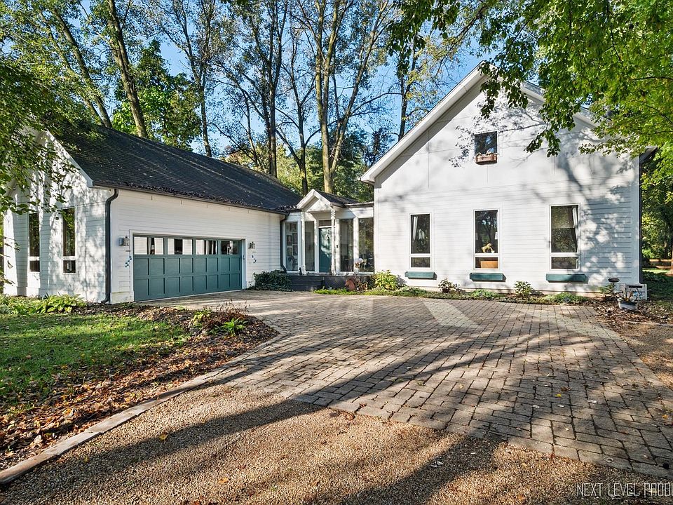 Imagine a home nestled in a stunning wooded lot with well thought out gardens for your enjoyment year-round! Come see this exceptional custom designed contemporary home with over $100k in upgrades since 2019 including a gourmet kitchen, all 4 decks, insulated and heated oversized garage, fully fenced back yard, gutters w/guards, whole house generator, 100s of gorgeous perennials, tasteful flooring, high efficiency furnaces, reverse osmosis/iron treatment/water softening units/water heater, membrane-encapsulated crawl with additional sump pit and high capacity pumps, California closets, paint throughout... the list goes on and on all on a quiet street in historic Wayne across from Wayne Park and a block from Wayne Elementary School! Enter into the sunroom with floor to ceiling windows leading into the dining room & living room with soaring wood beamed ceiling, fireplace, custom wainscot and loft overlook from above! The dining space adjacent to the kitchen has a big sliding glass door that leads out to a deck overlooking the deep back yard. The updated kitchen has custom cabinetry with plenty of drawers for easy storage access & built-in wine storage, subway tile walls with floating shelves, quartz c-tops, SS appliances and a center island with niche for under counter microwave. The versatile gathering room space could easily be converted back to a main floor primary bedroom en suite(see pics) with a wall of built-in linen cabinets, shower with glass doors and a jetted tub, walk-in closet with built-ins and access to the laundry room. There's also a 2nd full 1st flr guest bath! The family room loft has lovely views of living room below, engineered hardwood floors, wainscot and custom glass panel walls. Bedrooms two and three upstairs have big closet space, chandeliers and Juliet inspired glass doors w/railings overlooking the serene back yard. Full hall bath with pedestal sink and tub/shower with gorgeous aqua tile and glass doors. There is an amazing private den off of the sunroom that could be used as a studio or guest suite with its vaulted ceiling and loft space above presently being used as bedroom four. Beautiful hardwoods throughout the main floor! Enjoy the great outdoors from your deck w/retractable electric awning overlooking the private tree filled yard. Come and enjoy small town Wayne living approx. 45min from O'Hare with all the modern conveniences you could imagine close by!