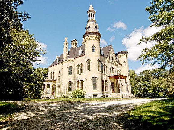 Historic Dunham Castle in Wayne IL. Property is located in the Oak Lawn Farm National Historic District and the Wayne Historic Sites district. The 15 acre property is zoned as a single family residence. Village is unlikely to permit a change in zoning or subdivision of the property. The structure needs significant investment. Serious buyers only, please, pre-qual required. Property partially gutted, room sizes approx
