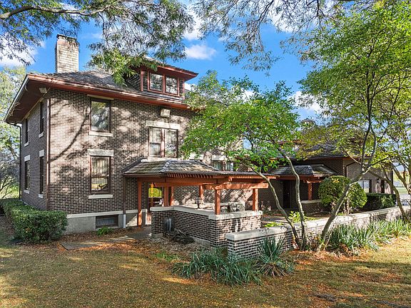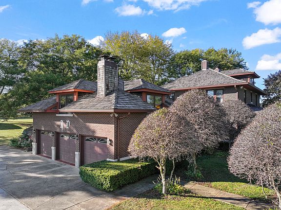 A car collector's dream! Five beautiful, wooded acres are the setting for this gracious 1930 all-brick home with four finished levels. The covered front porch evokes the charm of yesteryear, while spacious rooms, hardwood floors, cove molding, solid oak doors, and built-ins reflect timeless craftsmanship. There are four full baths, three fireplaces, and an amazing great room - "The Oak Room" - measuring 26 x 23 with a wet bar and fireplace. The finished basement includes a recreation room with fireplace and wet bar, plus a sixth bedroom. The attached three-car garage is tiled and heated, perfect for year-round use. This home is ideal for entertaining family and friends and offers versatility for the hobbyist, collector, or family business. Dual-zone HVAC systems were replaced in 2018 and 2023 and roof replaced in 2019. Two large heated outbuildings total over 11,000 square feet - one featuring a loft/retreat and 1.5 baths. The lot is wooded and level, ideal for creating additional recreational spaces such as a pool, sports court, or expanded outdoor living area. This well-maintained property offers endless opportunities to make it your own. Just minutes from St. Charles North High School, downtown St. Charles shopping and dining, and the Fox River Bluff West Forest Preserve with its scenic trails and river views. For almost 40 years, this home has been treasured and well cared for - now it awaits new owners to create their own memories in this remarkable setting. This property is being conveyed "AS IS" and priced below appraised value. Zoned Residential. See additional details.