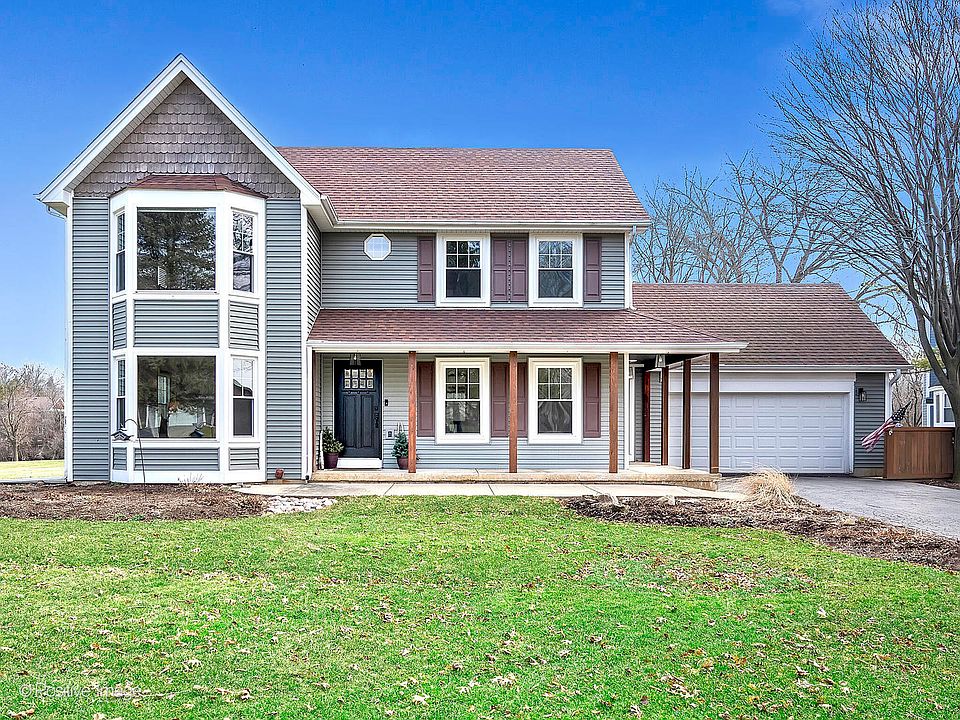 Wow! What an absolutely gorgeous house on one of the most beautiful lots in St. Charles with an incredible western exposure that fills the home with light. This updated four bedroom, 2.2 bath, two story home sits on an awesome 1.62 acre private lot with awesome lake views! Great layout with formal living & dining rooms, a great room with new fireplace for cozy nights...gourmet kitchen which has recently been completely redone with all new custom cabinetry that boasts soft close cabinet doors and large deep drawers, a 10 foot island with seating for 5, Quartz counter tops, high end stainless appliances, and an amazing view of the yard! New stone patio with lighting makes this the place you want to be every summer evening! 3/4 inch solid hardwood floors throughout the main level. Finished basement has bar area with a sink and fridge, work out corner, family room area and a kids play space. There's a shed in the back for all your toys. Adorable covered front porch. Awesome neighborhood with award winning St. Charles schools! NEW ITEMS INCLUDE BUT ARE NOT LIMITED TO: WINDOWS 2022, ROOF, 2017, BASEMENT 2018, BACKYARD STONE PATIO 2019, STONE FIREPLACE 2019, MASTER BATH AND SHOWER 2023....Nothing like it on the market.