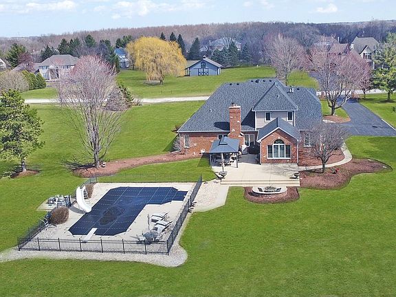 Experience the pinnacle of luxury living in this stunning custom-built estate, designed for both comfort and grandeur. Nestled on over two acres of beautifully landscaped grounds, this remarkable home boasts a first-floor primary suite, an expansive sunroom, and a resort-style backyard with a sparkling 20' x 40' in-ground pool. Step inside to be greeted by a dramatic two-story foyer that flows effortlessly into the great room, where soaring ceilings and a remodeled gas fireplace with an elegant mantel create a warm and inviting ambiance. The spacious formal dining room is perfect for hosting elegant gatherings, while the ultra-spacious first-floor den is an ideal retreat for remote work. The heart of the home is the updated chef's kitchen, featuring a massive island that seats nine, quartz countertops, a walk-in pantry with custom shelving, and premium stainless steel appliances. The adjacent breakfast nook provides a cozy setting for morning coffee, while the remodeled laundry room offers quartz countertops, a stainless steel sink, and high-end shelving for ultimate convenience. The first-floor primary suite is a private sanctuary with gleaming hardwood floors, a coffered ceiling, and dual walk-in closets. The luxuriously remodeled en-suite bathroom features dual sinks, a jetted tub, and a spa-inspired shower with body sprays and a rain showerhead and steam shower. Upstairs, you'll find three additional bedrooms and a massive bonus room, perfect as a fifth bedroom, second-floor family room, or home gym. One bedroom enjoys a private en-suite bath and dual closets, while the other two share a Jack-and-Jill bathroom with generous closet space. The sunroom/family room, bathed in natural light from expansive windows, boasts vaulted ceilings and breathtaking views of the lush backyard and pool. Step outside to a huge concrete patio, where you can unwind by the built-in brick paver fire pit, relax under the pergola, or enjoy a refreshing swim in the in-ground pool with a brand-new liner (2023) and cover (2024). Additional features include a new roof (2024) and whole-house generator, epoxy garage flooring, gas line to grill, invisible fence, and zoned heating and air. The home also offers a huge basement and is horse-friendly, making it the perfect retreat for equestrian enthusiasts. Meticulously maintained with updated light fixtures, replaced windows, and impeccable attention to detail, this home is truly a one-of-a-kind retreat. This home also features hardwood floors and porcelain tile through out as well as plantation shutters! Experience luxury, comfort, and timeless elegance-all within this breathtaking estate. Schedule your private tour today!