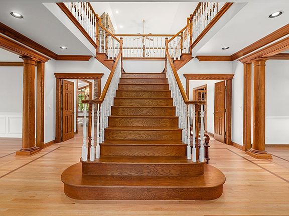 Welcome to Meana Manor, an exquisite estate nestled at 5N847 Surrey Road in the heart of Wayne. Set on six serene acres along one of the area's most prestigious streets, this property offers the perfect blend of luxury, nature, and privacy. Ideal for equestrians and those who cherish refined country living, Meana Manor provides a tranquil retreat just ten minutes from the vibrant downtowns of St. Charles and Geneva-where fine dining, boutique shopping, and endless amenities await. A long, tree-lined driveway winds through manicured grounds, guiding you to the stately entrance of this nearly 10,000-square-foot estate, where timeless elegance meets architectural grandeur. The approach alone is a statement of refinement, graced by a majestic porte cochere that welcomes guests in classic style and hints at the splendor within. Upon entry, a grand foyer unfolds, anchored by a sweeping staircase and flanked by formal living and dining rooms-perfect for hosting with grace and sophistication. The two-story family room serves as the home's centerpiece, showcasing floor-to-ceiling windows that bathe the space in natural light and offer panoramic views of the estate's private pond and lush landscape. A double-sided fireplace seamlessly connects the family room to the gourmet kitchen, creating warmth, harmony, and an effortless flow for both daily living and entertaining. The kitchen is as functional as it is elegant, boasting an expansive island with seating for many, endless custom cabinetry, and a casual dining area ideal for everyday gatherings. A fireside lounge beside the kitchen provides a cozy nook for relaxation as dinner simmers nearby. Offering six bedrooms, eight bathrooms, and two private offices, the residence was thoughtfully designed to balance luxury with livability. Each bedroom features its own ensuite bath and walk-in closet, providing privacy and comfort for all. The first-floor primary suite offers serene pond views and direct access to the grounds, delivering a retreat of pure tranquility. Above the six-car garage, you'll find an impressive 2,000+ square feet of private office or guest space, accessible from both the main residence and a separate private entrance. This versatile area is ideal for a self-employed professional, in-law quarters, or guests seeking independence without separation. The lower level continues the theme of versatility, with soaring ceilings and space ideal for a golf simulator, fitness studio, recreation room, or home theater. A sunroom invites soft morning light and garden views, while the sprawling outdoor grounds feature a picturesque pond-perfect for peaceful afternoons of fishing or quiet reflection amid nature's calm. With its porte cochere, six-car garage, and a rare combination of grace, grandeur, and natural beauty, Meana Manor stands as one of Wayne's most distinguished estates-a sanctuary where luxury, privacy, and timeless elegance converge in perfect harmony. Welcome home to Meana Manor.