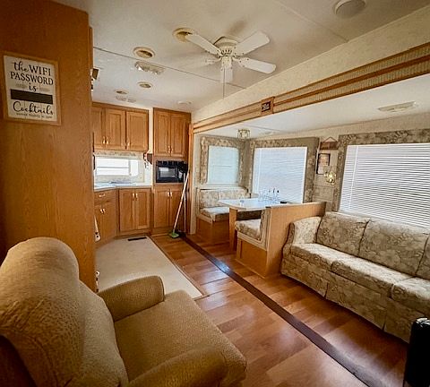 This listing sits high and proud in section 6. Included is a well cared for 2003 Newmar Indust travel trailer with sleeping accommodations up to 6! A lovely covered deck that overlooks the spacious lot so you can take in all of Mother Nature's beauty! Also included is a room addition in need of a little TLC. Let's not forget there are 2 sheds for storing all the camping necessities! There's alot to like about this property package. Call for a private showing today. Gated facility-must be accompanied by a Real Estate Broker to view listing. Property owner is responsible for yearly assessments. This is not a homestead property.