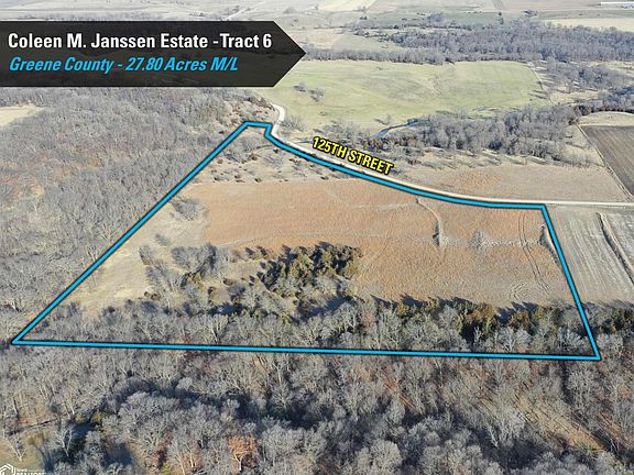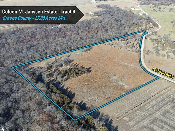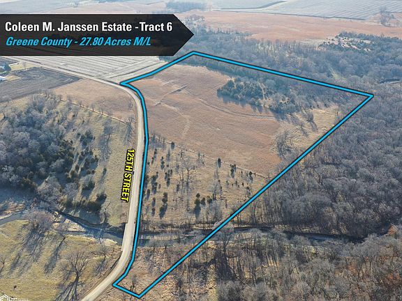 Greene County, Iowa Farmland Auction - April 3, 2025 at 10 AM! Tract 6 consists of 27.80 acres m/l (to be surveyed) with 13.60 FSA cropland acres currently enrolled in CRP, see the 'CRP Map'. The underlying soils have a CSR2 soil rating of 68.2 with Lester loam and Moingona loam as the primary soil types. The cropland acres are certified as Highly Erodible Land (HEL). The balance of the tract consists of recreational acres. CRP Contract Details: Contract #11380B - 13.60 Acres enrolled in the Pollinator Habitat program (CP42) with an annual payment of $3,895 ($286 per acre). This contract is set to expire in Sept. 2026. Access is from 125th Street. This tract would make for a great building site with recreational acres and access to the North Raccoon River. Alliant Energy is the energy provider for the area. There is no rural water provider - a well will need to be dug to provide water.