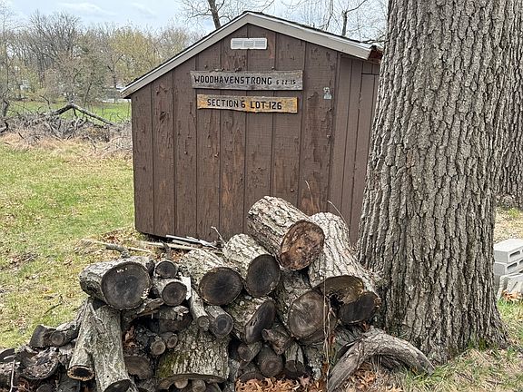 Double Gravel Drive that is convenient for parking multiple vehicles or for easy access. Also, water, sewer, and electricity extended to the gravel pad is a significant advantage, making it ready for use, whether for RV camping or building a structure. A deck is a nice addition for outdoor camping, providing a comfortable space to relax and enjoy your surroundings. Shed with refrigerator, grill and other contents, small shed in back for firewood, and extra firewood throughout the property. Common area the rear, close to a comfort station and store and pool 1 area. Call today for a showing! Woodhaven Lakes offers access to the 7 lakes, fishing ponds, two pools, beach, recreational complex, playground, general store, trails for hiking, cross country skiing, and snowmobiling. Please note that Woodhaven Lakes is a gated recreational community and cannot be used as a primary residence or homestead. You must be accompanied by a broker to view any properties. Property owner pays the association fees.