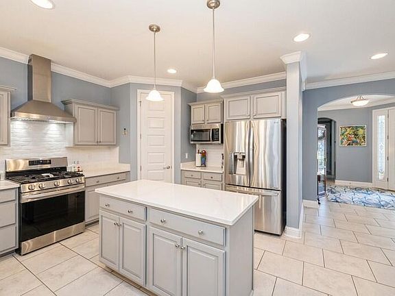 PRICE REDUCED $54,100 SELLER SAYS 'BRING OFFERS'! Better than New! PRIDE of Ownership shows throughout both the interior and the exterior of this home. This also has unmatched curb appeal! The stylish well-designed Whitworth 'St Croix II' open floor plan offers three bedrooms and two 1/2 bathrooms with 2,680 square feet of living space. There is an oversized 2-car garage with lots of extra space for storage or workspace. Step inside and feast your eyes. The foyer welcomes you with its 9-foot ceiling, crown molding and the gorgeous 8-foot-tall etched double door entryway. Luxury upgrades such as those seen in the foyer are seen throughout the home. The gourmet kitchen is highlighted with a custom range hood, stainless steel appliances, gas stove, walk-in pantry, granite countertops and entertaining large kitchen island with pendant lights. The kitchen features plentiful cabinets and granite countertops. Spacious living room has tray ceiling, tile floors and ceiling fan.