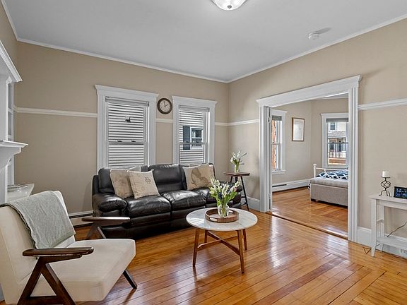 Why pay high rent when you can own this gorgeous condo! With beautiful hardwood floors, an abundance of natural light, a large kitchen, and ample storage throughout, this 1 bed, 1 bath condo offers so much for its size. This first floor unit imbues charm with its mouldings, built-in cabinet, mantle and stunning French doors that lead to the bedroom. A private back deck overlooking the shared, fully fenced in backyard adds a spacious feel to the home. The basement, which each unit owner has private access to, holds a private storage space and shared laundry room (for unit 1 and 2) containing private washer and dryer for each unit. Conveniently located to shopping, restaurants, and the MBTA while offering the peacefulness of a quiet street. Don't miss this amazing opportunity!
