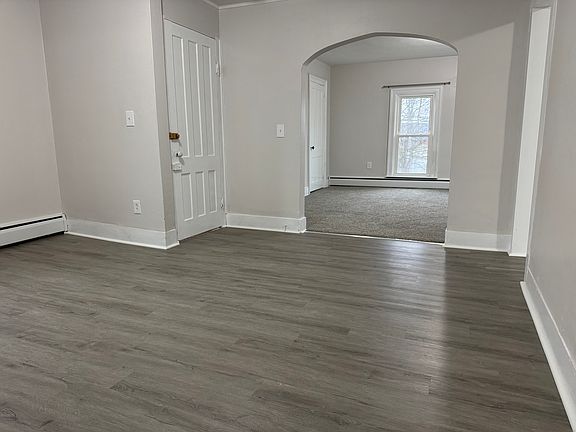 This upstairs two bedroom unit has been completely renovated with every surface of the appartment touched. The layout of the apartment includes two medium sized bedrooms, freshly painted, including all doors & trim, and has brand new carpet. The main living spaces, consisting of a large living trim as well as a formal dining area have tremendous natural light & brand new luxury vinyl tile flooring. The new flooring flows into the spacious kitchen as well. You'll notice new cabinets & counters. The full bath has been completely gutted, and brand new. Custom shelving and storage are ample in the apartment. All lighting & plumbing fixtures are brand new. One off street parking space is assigned to this unit, and there is laundry, shared with the downstairs unit, in the common area. This home is in a great neighborhood & centrally located with easy access to everything you'll need. Perspective tenants should be prepared to supply references, provide income documentation, and have sufficient credit. This is a non-negotiable smoke free and pet free unit. Unit is plus utilities. If interested in setting up a private viewing, please respond with your phone number. Thank you!