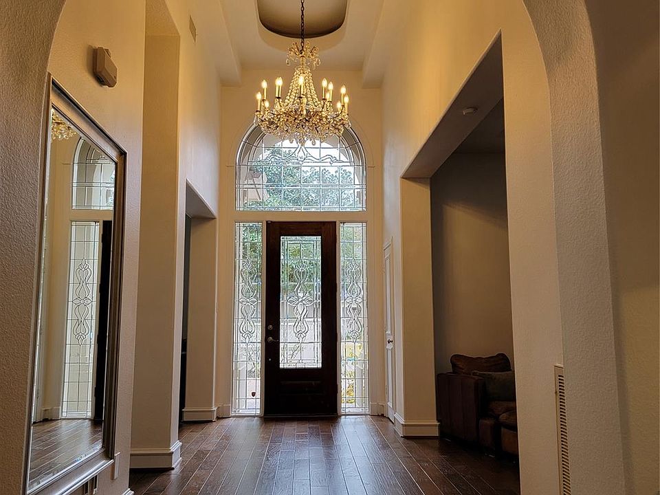 Must see this 1 STORY 3 bed, 3/1 bath in Somerset, with its fantastic layout, natural sunlight throughout, vaulted ceiling, captivating water views, hardwood floors throughout with 6" baseboards, Douglas controlled shades, Plantation shutters, central vacuum, two fireplaces, one with updated tile, kitchen includes Kitchenaid appliances, granite counters, cooktop island & wine fridge, walls of windows overlooking the pond, master retreat with water view and an updated master bath, both guest bedrooms are en-suite. The welcoming backyard features a new pool, fan lanai-covered patio, travertine patio, flagstone patio walkway & flat-screen TV overlooking the incredible water, golf course view, a fountain that lights up at night and a mosquito misting system. The garage with an epoxy floor and cabinets has a staircase leading to the Texas basement, offering a large storage area. The home is electrically set up for a generator, and the generator stays. French drains were added for drainage.