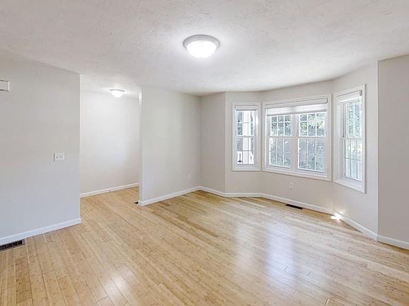 This 3 bedroom, 2.5 bath townhouse was built new from the ground up in 2006 and has been remarcably well maintained. The oversized 3 story townhouse is located in a quiet neighborhood setting with easy access to Rt 495. The large kitchen has maple cabinets, stainless steel appliances and granite counters with direct access to a sizeable back yard. The second floor boasts two substantial sized bedrooms, each with walk in closets, one with en suite bathroom. There is a second common bath on the second floor along with laundry. The third floor is a wide open room with skylights and multiple closets making for an enormous third bedroom, family room, office or game room. Additional expansion possibilities exist in the basement. The hot water heater was replaced in December 2018 and there is a forced hot air system by gas and central A/C throughout the home. Two assigned parking at the rear of the property are included in the sale.