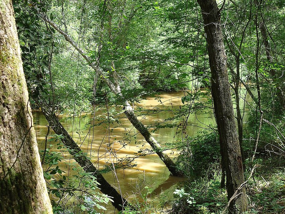 Magnificent homesite fronting on Potato Creek. This creek is more like a river and is loaded with fish and is great for kayaking. Property is wooded with big pine and hardwood timber and has several good home sites. Very convenient to Barnesville and Thomaston.