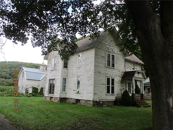 could be a "Painted Lady" as it needs scraping and painting anyway.Interior has an open stairway,hardwood floors decorative wood work in spots,ceilings are spiraled in many rooms.there still is work needed to bring this one back.Large rooms,bathroom already plumbed upstairs and ready to finish,some electric done,kitchen needs finishing but cabinets are there to work with.Ceiling is down in dining room,it is a work in progress.barn out back also needs painting.front and side porch