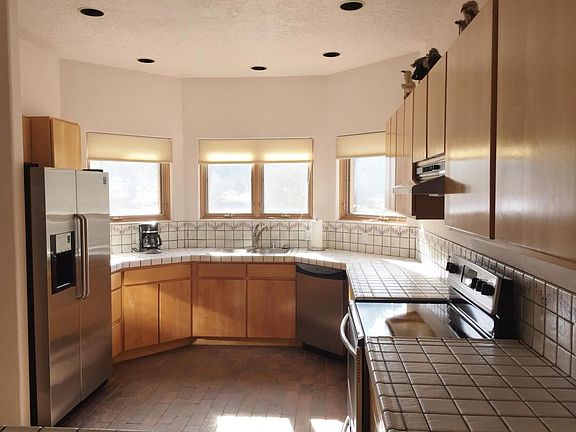 Charming northern NM home nestled among the pines on 2 Acres w/sweeping views, privacy, serenity & space. Brick floors throughout, 2 living areas, formal dining rm, two story atrium, spacious open kitchen w/plenty of counter space and beautiful mountain views. Sun-filled great room w/raised T & G ceiling & custom fireplace wall w/pellet stove. Enjoy nature's views from every window. Two lg bdrms downstairs, 13X11 study/home gym can easily be turned into a 4th bdrm. Upstairs enjoy the Private Master Suite w/loft sitting area and 9x15 walk in closet. Master bath w/jetted tub, walk-in shower and double stainless steel sinks. There's plenty of room for your toys in the finished 3 car garage. Meticulously loved and care for, this custom mountain beauty is a rare opportunity. Come take a look!