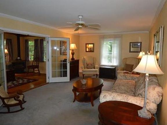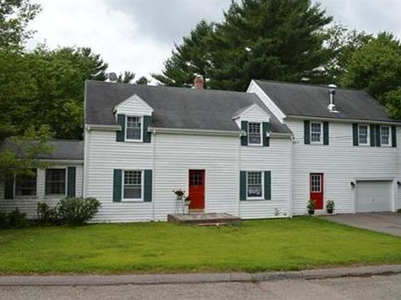 Enlarged Colonial Style Home on beautiful Country Road features 9 rooms, 4 bedrooms and 2 full baths. Master bedroom addition offers private bathroom with designer lighting and ceramic tile flooring. Three other bedrooms on second floor feature carpeting one has hardwood under the carpet. Bright and sunny kitchen features white cabinetry, hardwood flooring, peninsula breakfast bar and pantry. Formal Living Room front to back also has hardwood floors under the carpeting. French doors off the formal living room opens to a beautiful den with a vaulted ceiling, gas log fireplace and hardwood flooring. Additional family room offers slate flooring, wood stove, a bay window and access to the garage. Close to town, shopping and commuter rails Norfolk and Franklin. Private wooded lot.