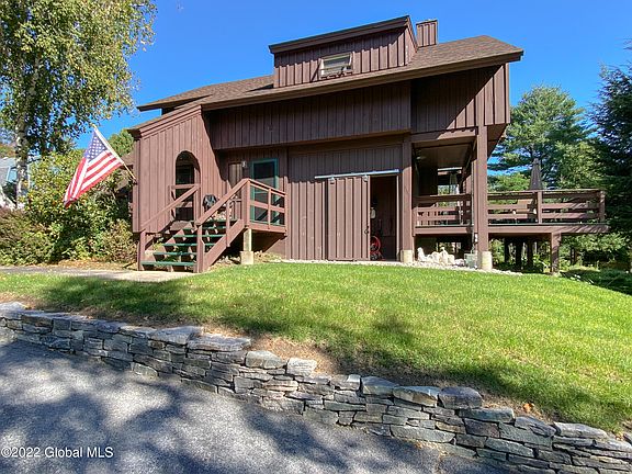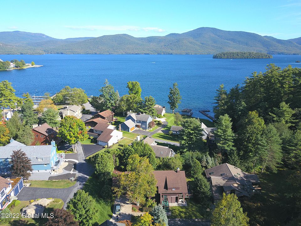 Contemporary 5 Bedroom home in the heart of Bolton Landing with lake access & docking for 24' boat. Beautiful Vermont Castings fireplace in the living room, Custom Cherry Kitchen with large island and skylight, wet bar, formal dining room with fireplace, sunroom with hot tub, 1st floor bedroom/bathroom suite, 2nd floor Bed/Bath suite with laundry area, plus 3 additional bedrooms and full bathroom. Large outdoor deck for entertaining. Nicely landscaped, brick garden path, garden shed, and attached 2 car garage with walk up attic for extra storage. Public water and sewer. Newer furnace & roof. HOA fee covers maintenance of dock and common areas. A short walk to downtown Bolton for shopping, dining and entertainment.