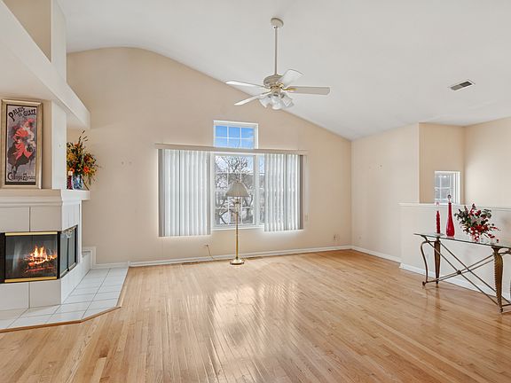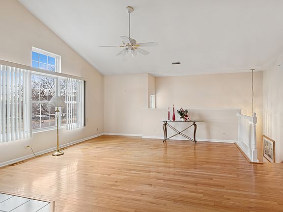 Spacious end unit offers 3 bedrooms, 2 full-bathrooms with an attached two-car garage. This updated unit is located on the second level and features a private entrance that leads to an open floor plan with vaulted ceilings. The living and dining rooms share a two-sided fireplace, adding both flair and ambiance. This area seamlessly opens to a large kitchen with white cabinets, ample counter space, a pantry, and room for a table. Throughout the home, you'll find gleaming hardwood floors and large windows that provide abundant natural light. The primary bedroom includes a private balcony overlooking professionally landscaped common grounds, and an array of colors as the foliage changes from season to season. This room also has a full en-suite bathroom with additional mirrored wall cabinets and a generous walk in closet closet. The second bedroom offers ample closet space. For convenience, the laundry/utility room with upgraded bosch washer and dryers is located in the hallway near the bedrooms, alongside a full bathroom for guests. The attached two-car garage also provides extra storage space. Large driveway can accommodate guest parking, in addition there is guest parking across from the unit. This property is in a highly sought-after location, popular with buyers due to its close proximity to the I-88 and 355 Toll roads, various shops, restaurants, schools, and parks. Residents can also enjoy nearby amenities such as Yorktown Mall, Morton Arboretum, and local walking and bike trails.