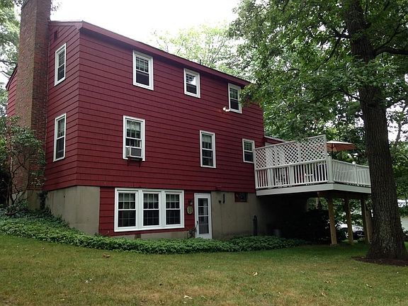 Move in before the school year starts. Located in a desirable close to town cul-de-sac neighborhood close to shops, library, parks, trails, playground and tennis courts. Move right into this 8 room colonial on almost a half an acre with a freshly painted exterior & first floor with new 12x14 Trex deck, New roof (2014) & new Pella and Anderson windows. Remodeled fully applianced kitchen with granite counter-tops, fireplace family room, hardwood floors. Open concept first floor. Lower level walk out fireplace playroom. The second floor features 3 bedrooms and an office or 4th bedroom. Title V certified . The expansive backyard is a welcoming surprise with plenty of extra storage in the shed, attic and 1 car garage. Accessible to town playground, tennis courts, Boston commuter bus, schools & shops.