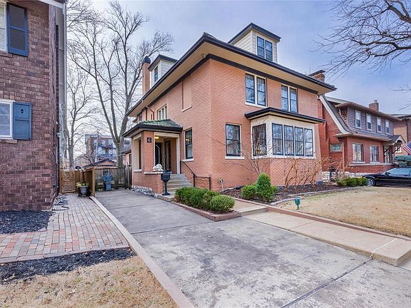Architecture, stature & location, no other compares. Once in a lifetime opportunity to own a piece of St. Louis History. Perfectly situated on one of the most Iconic Enclaves in St. Louis, Hillcrest Neighborhood, walk to all you wish to do~Forest Park, ice cream, acclaimed restaurants, all within a few blocks. Vibrant living among the most beautiful surroundings creating a life beyond your wildest dreams. Architecture showcasing finest in old-world ornate craftsmanship. Soaring ceilings, elegant foyer, living room w/wall of windows for sun filled rooms, large formal dining room w/stunning crystal chandelier, stately original staircase. Kitchen opens to family room, wood burning fireplace~perfect for large gatherings & holiday magic! Over 3600 sq ft ready for next stewards to love & care for the home. 4 beds/3 baths, L/L unfinished & adorned w/secondary kitchen. Primary suite w/custom closets, private office/den, 3rd floor w/full bath, walk-in closet, 4th BR. In a word, Spectacular.