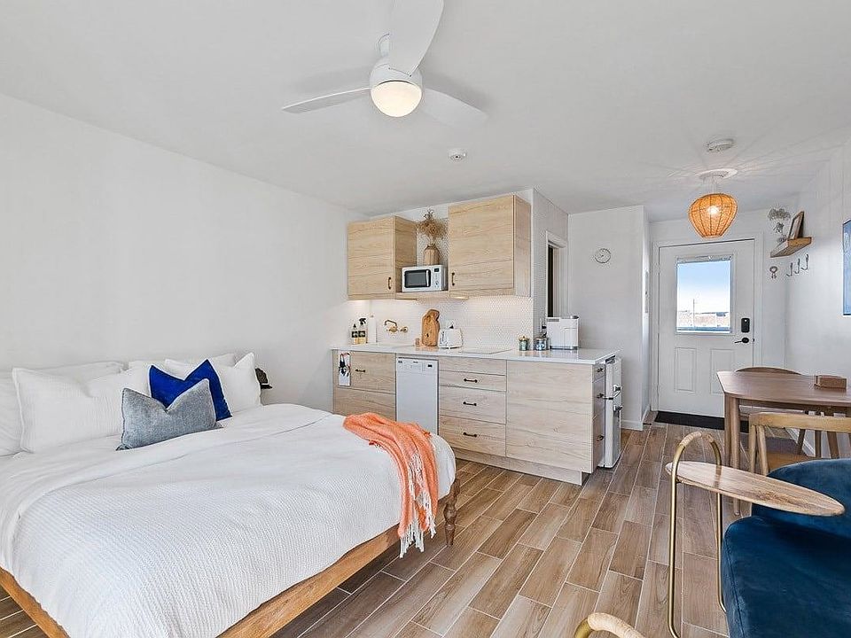 OPEN HOUSE Monday September 15th 5-7PM. IN THE HEART OF HAMPTON BEACH! Around the corner from the main beach and a mere 200 steps to the boardwalk, restaurants, shops, and nightlife, this beautifully updated, fully-furnished studio at the coveted 6 Ashworth Avenue Condominiums offers the ultimate beachside lifestyle. Extensively renovated in 2021, with new luxury vinyl flooring added in 2024, this turn-key condo blends comfort and style. The desirable easterly exposure brings ocean sounds, sea breezes, and Hampton Beach energy right to your door. Highlights include an open layout: kitchen is fully-equipped with stovetop, microwave, dishwasher, toaster, Keurig coffee machine, full-size fridge, and mini-fridge. Freshly painted, luxury vinyl flooring, and a sleek spa-like 3/4 bath. Furnishings include queen wood platform bed & mattress, 3-seat sofa, garment rack, wall-mounted Samsung TV, tableware/glassware & utensils. Keyless smart entry, on-site laundry, and assigned covered parking (#20) add everyday convenience. Condo amenities: bike storage, outdoor gas grill, heated covered pool, and expansive shared deck for meals & entertaining. Low $200/month condo fee which covers master & flood insurance, exterior maintenance, pool maintenance, landscaping, snow removal, and reserves. A rare chance to own a stylish, updated, and affordable year-round condo right at the heart of Hampton Beach!