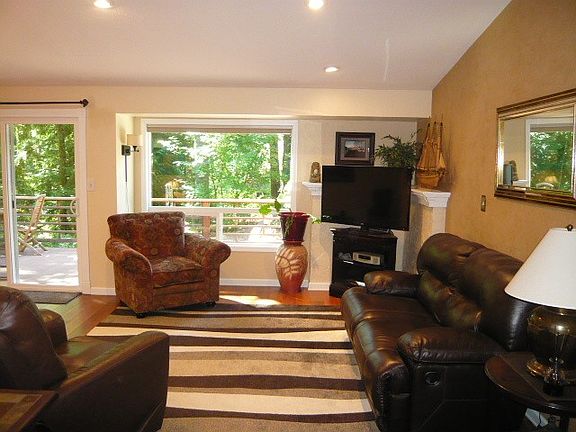 Rare find for this 1-level 3BR, 2BA home on a double lot w/sprawling deck & large yard w/ample garden & entertaining areas. Many upgrades throughout including granite tile counter tops in kitchen, laminate wood flooring, & bath upgrades. Sunny dining nook w/bay windows & vaulted ceilings fill the home w/light. Master suite has walk-in closet. 2 car garage too. Area amenities: 18-hole golf course, marina & beaches on Lake Whatcom, YMCA, swimming pool, sport courts, library, 24/7 security & more!