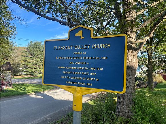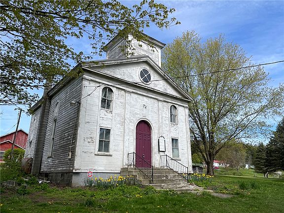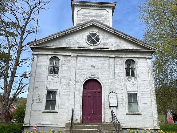 Nestled in the picturesque Finger Lakes region of New York, this charming 1840s church offers a serene retreat just 30 minutes from Ithaca, surrounded by rolling hills and scenic farm roads. Steeped in history, this timeless structure exudes character, with original windows and